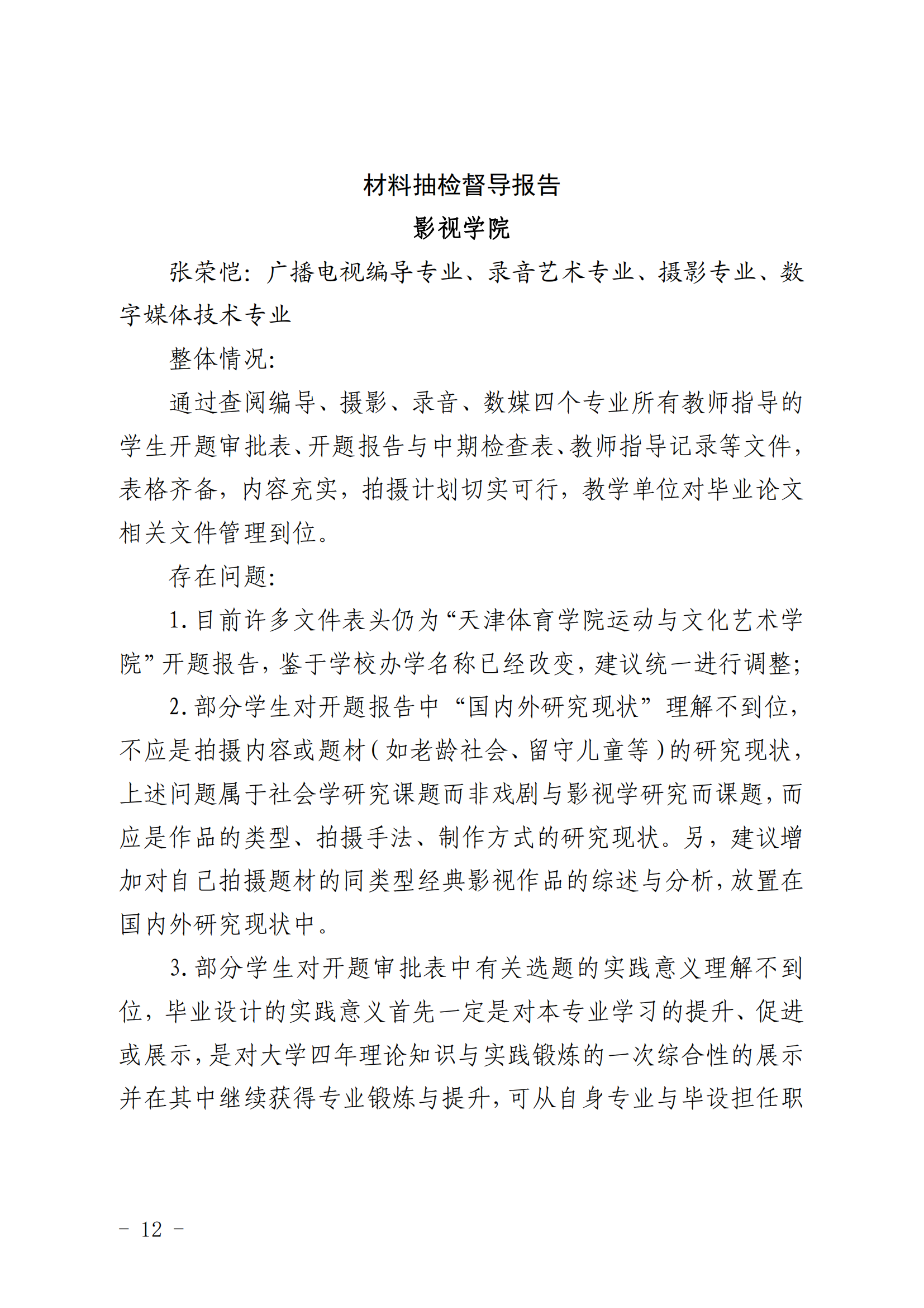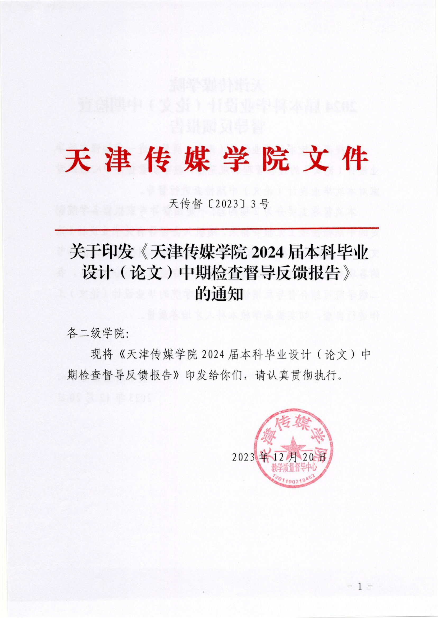 关于印发《天津传媒学院2024届本科毕业设计(论文)中期检查督导反馈报告》的通知(天传督【2023】3号)