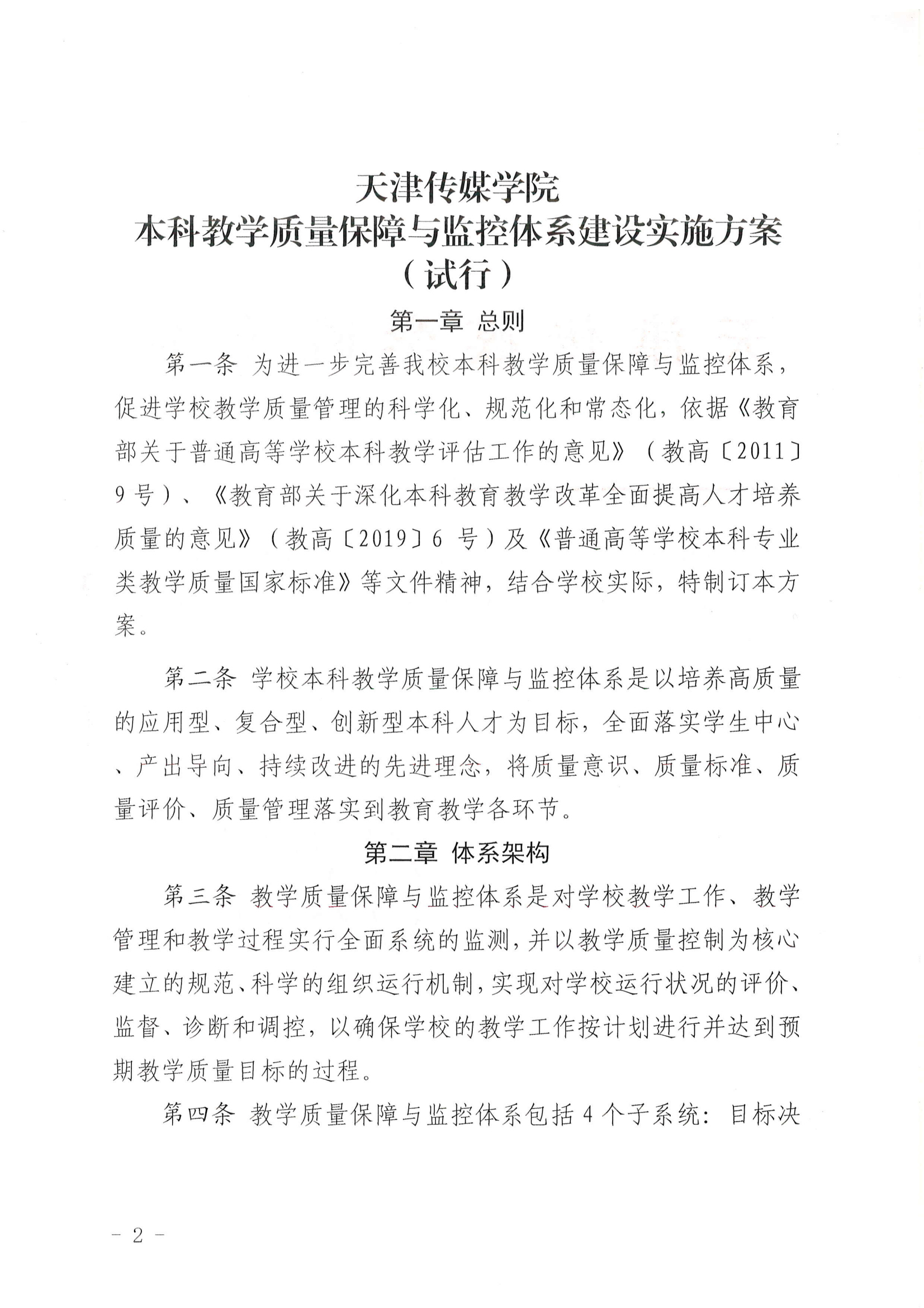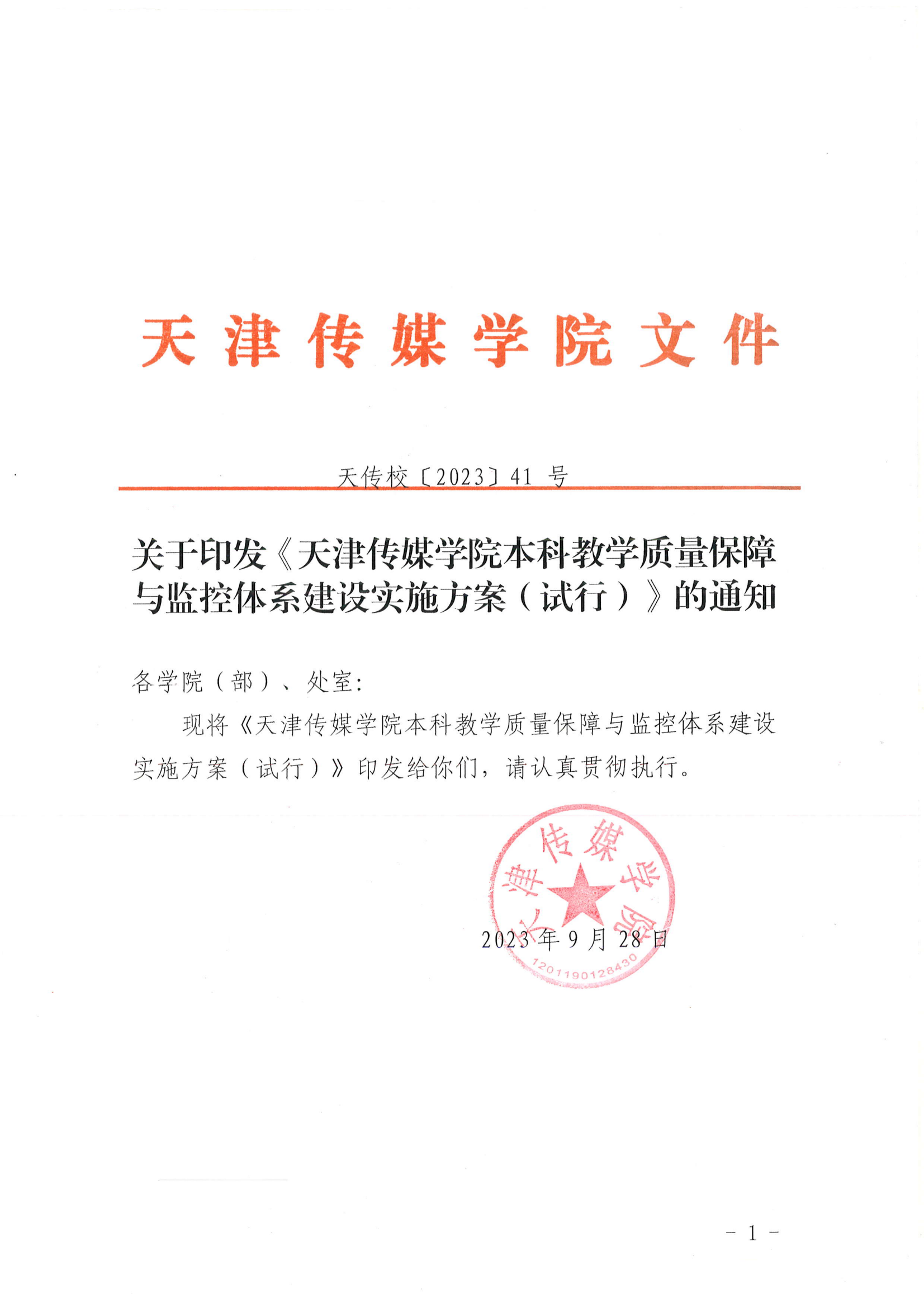 关于印发《天津传媒学院本科教学质量保障与监控体系建设实施方案(试行)》的通知(天传校〔2023〕41号)