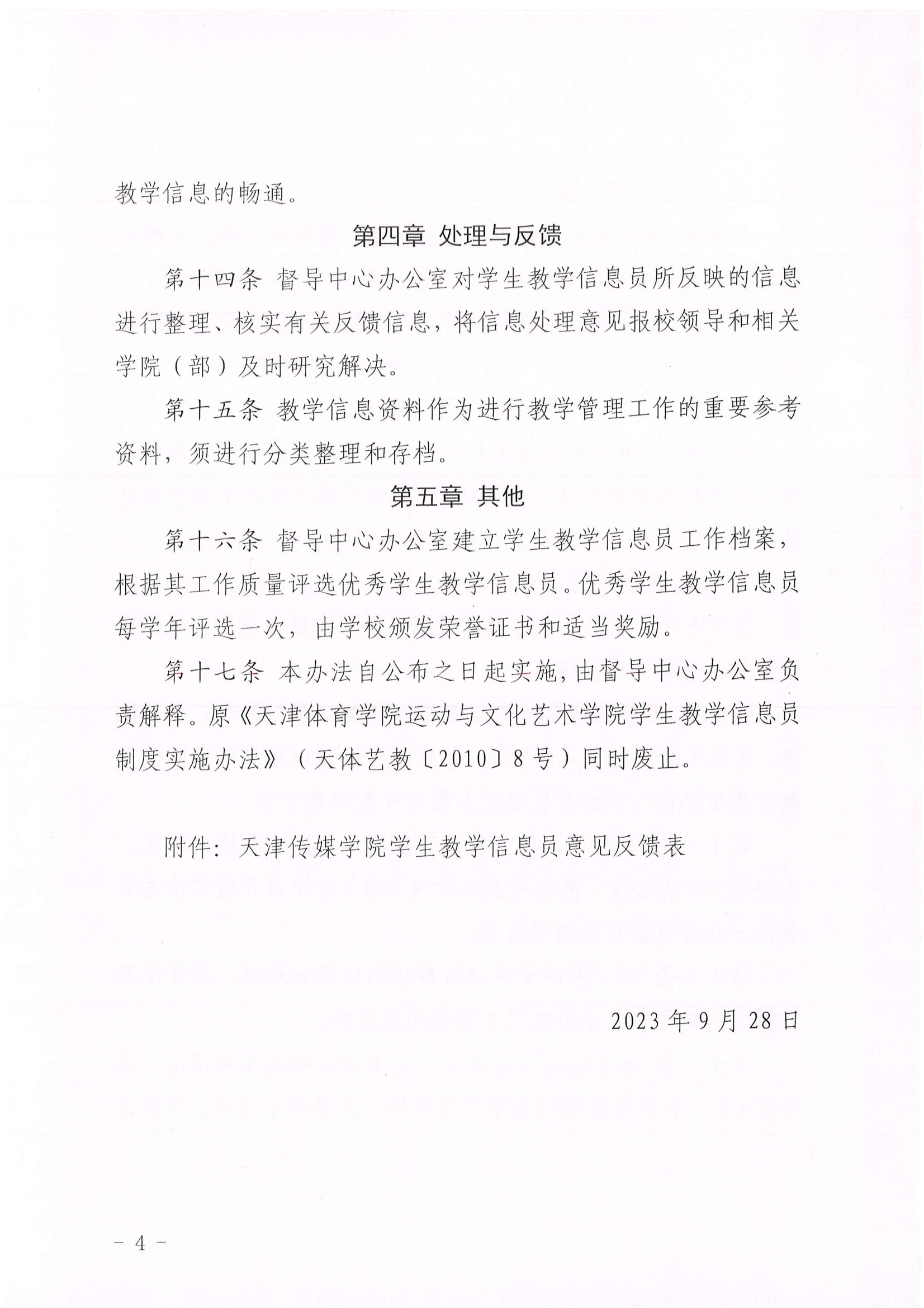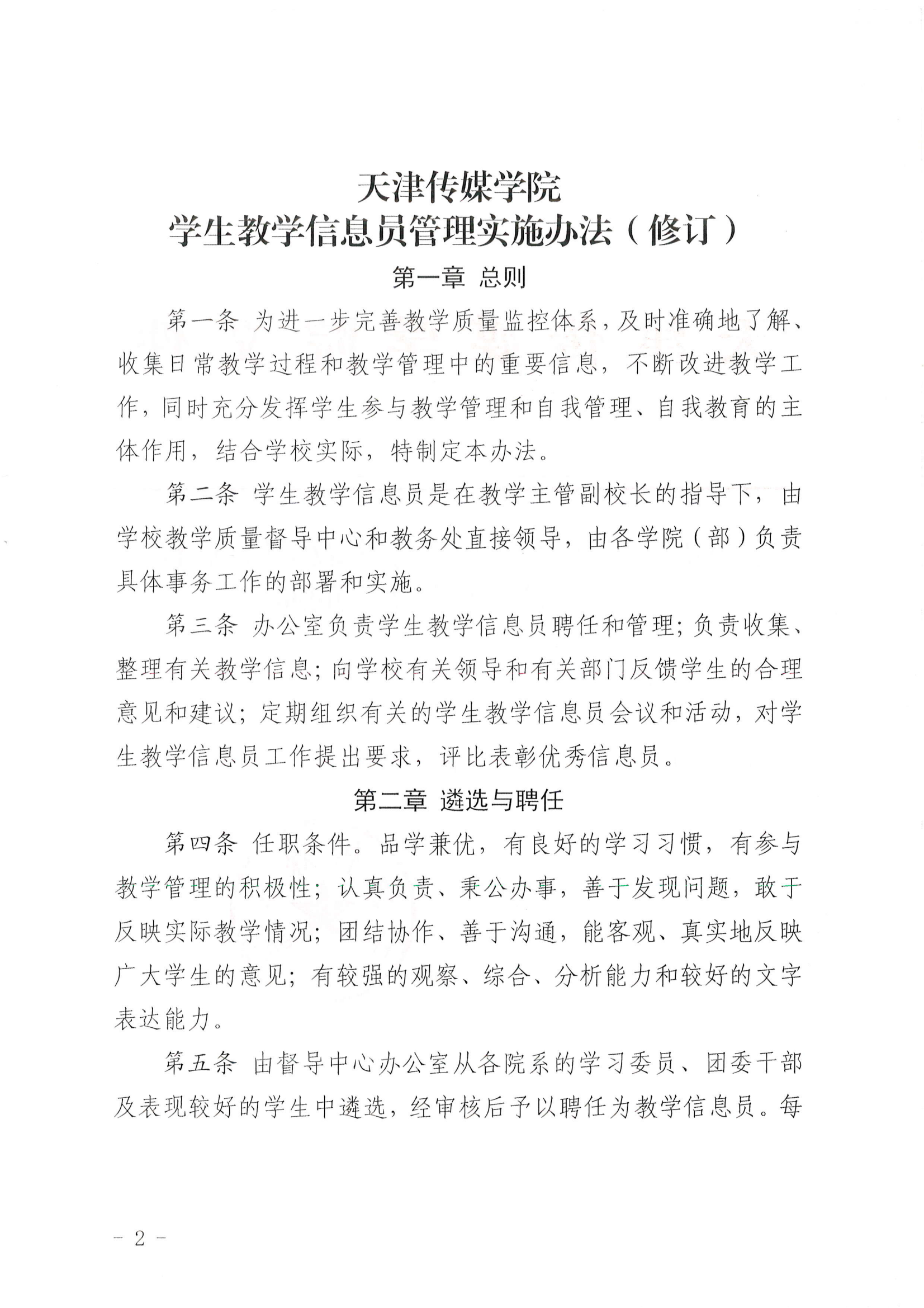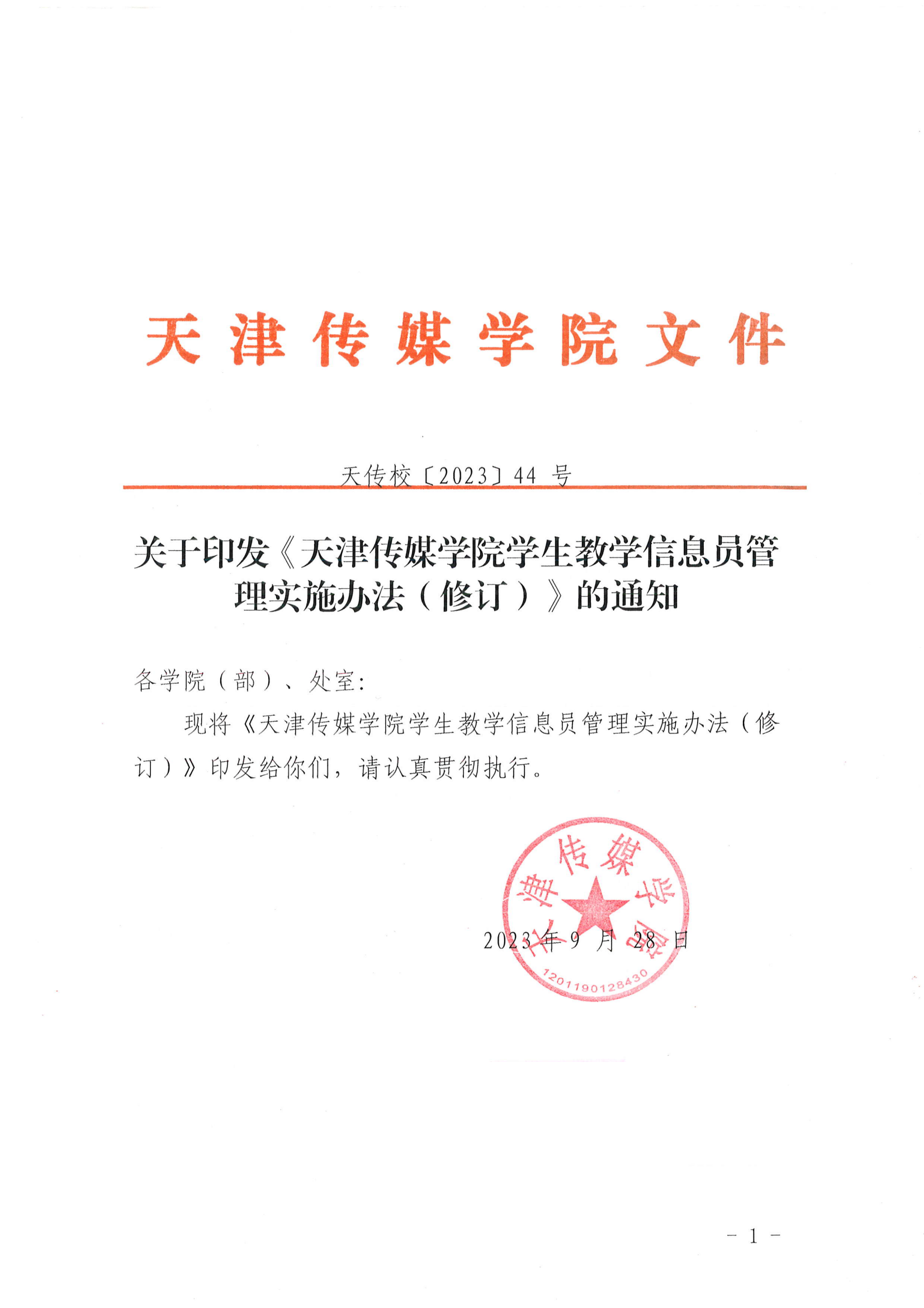 关于印发《天津传媒学院学生教学信息员管理实施办法(修订)》的通知(天传校〔2023〕44号)