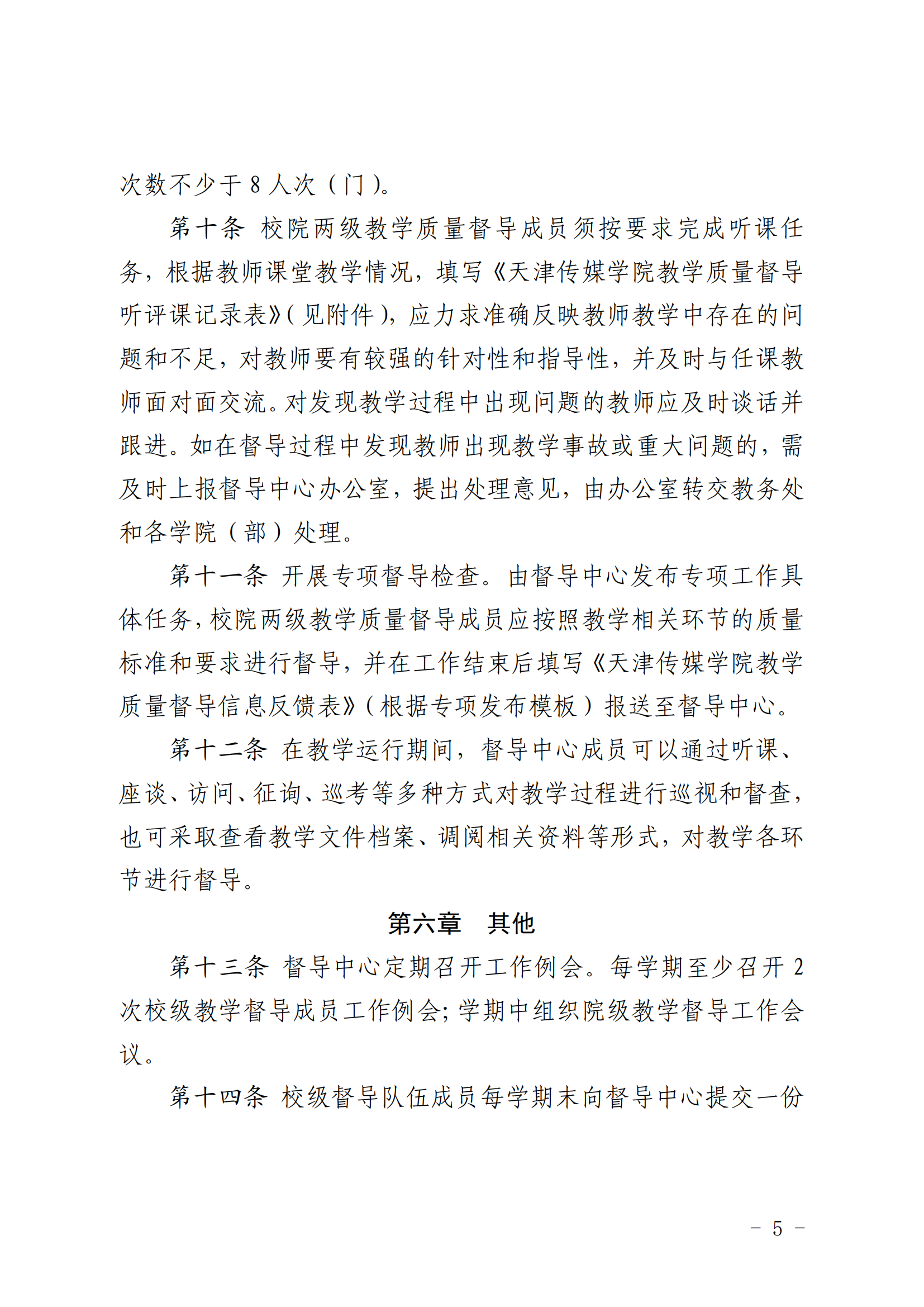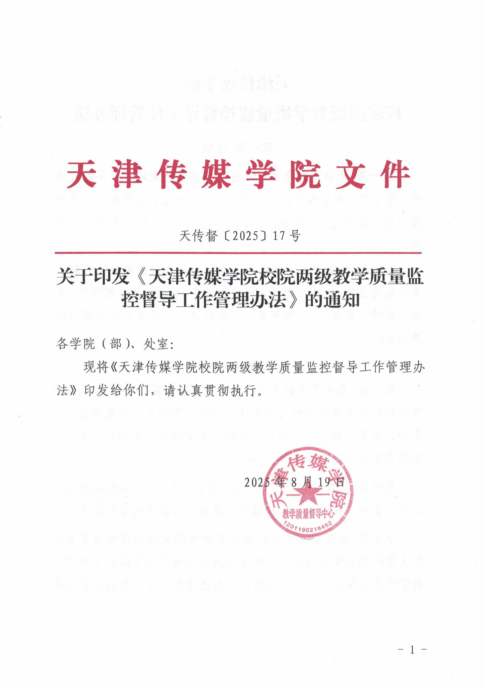 关于印发《天津传媒学院校院两级教学质量监控督导工作管理办法》的通知
