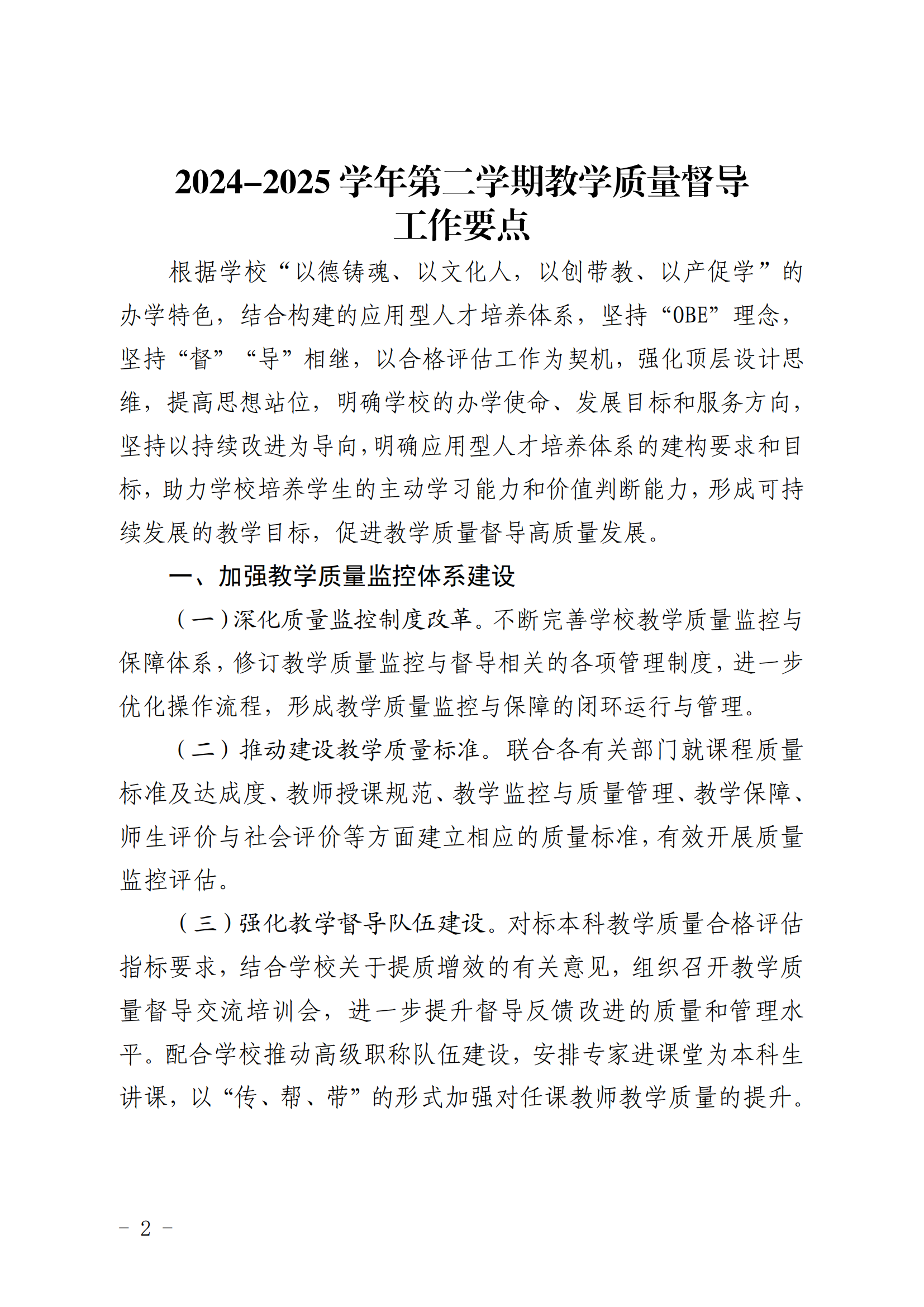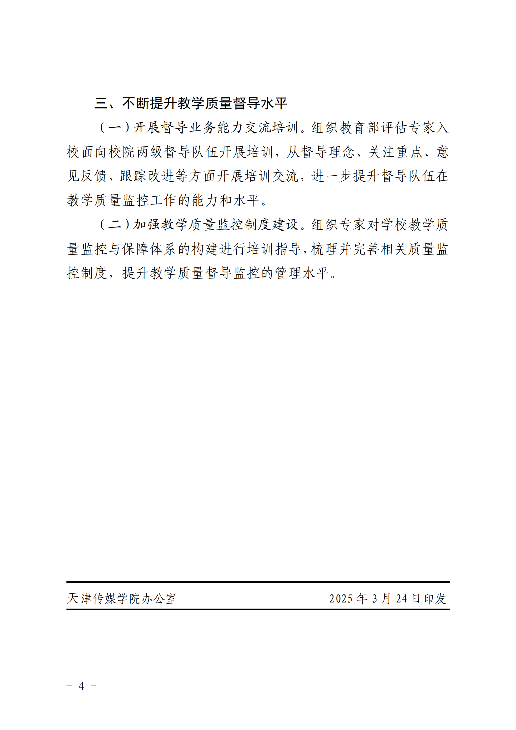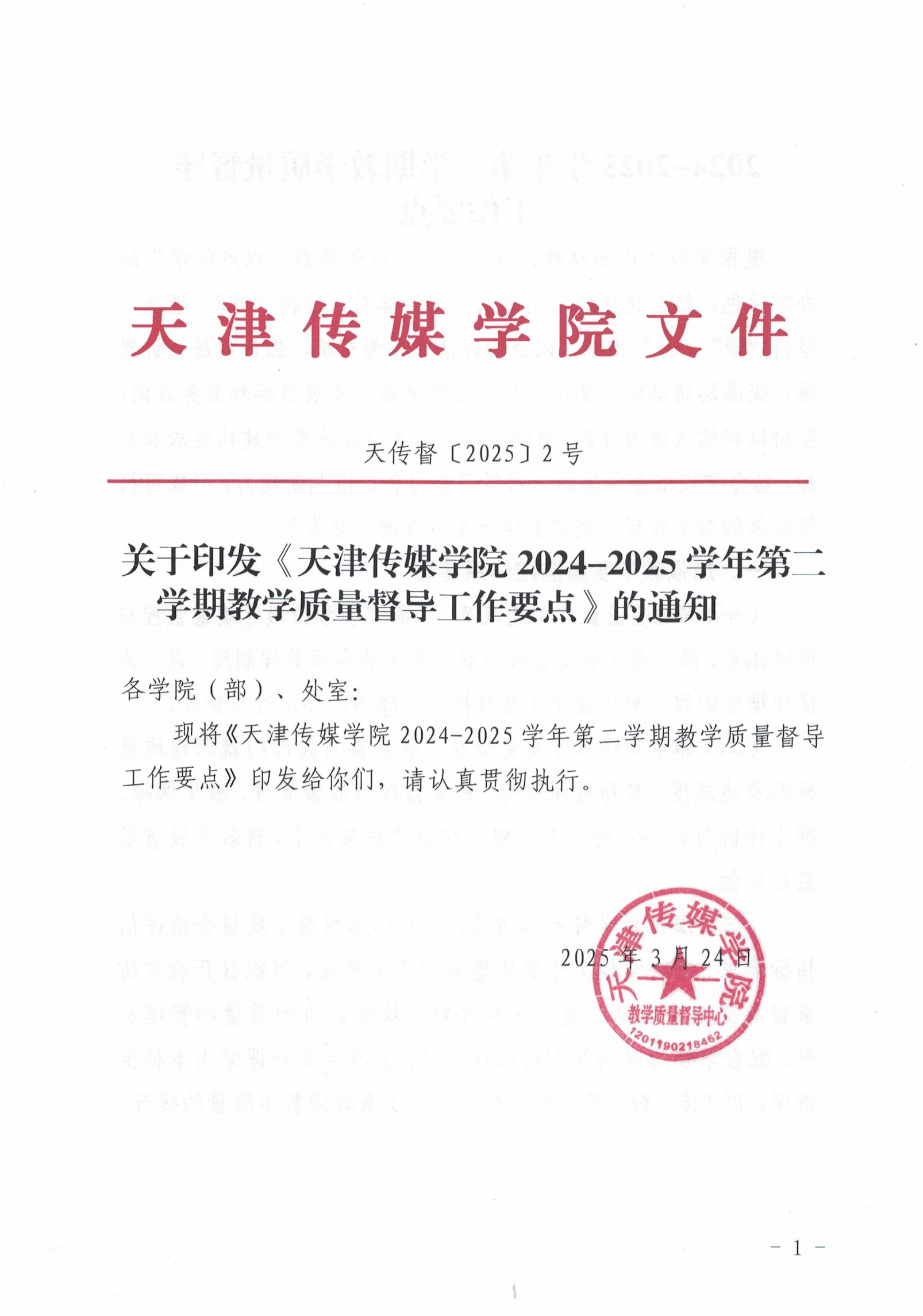 关于印发《天津传媒学院2024-2025学年第二学期教学质量督导工作要点》的通知
