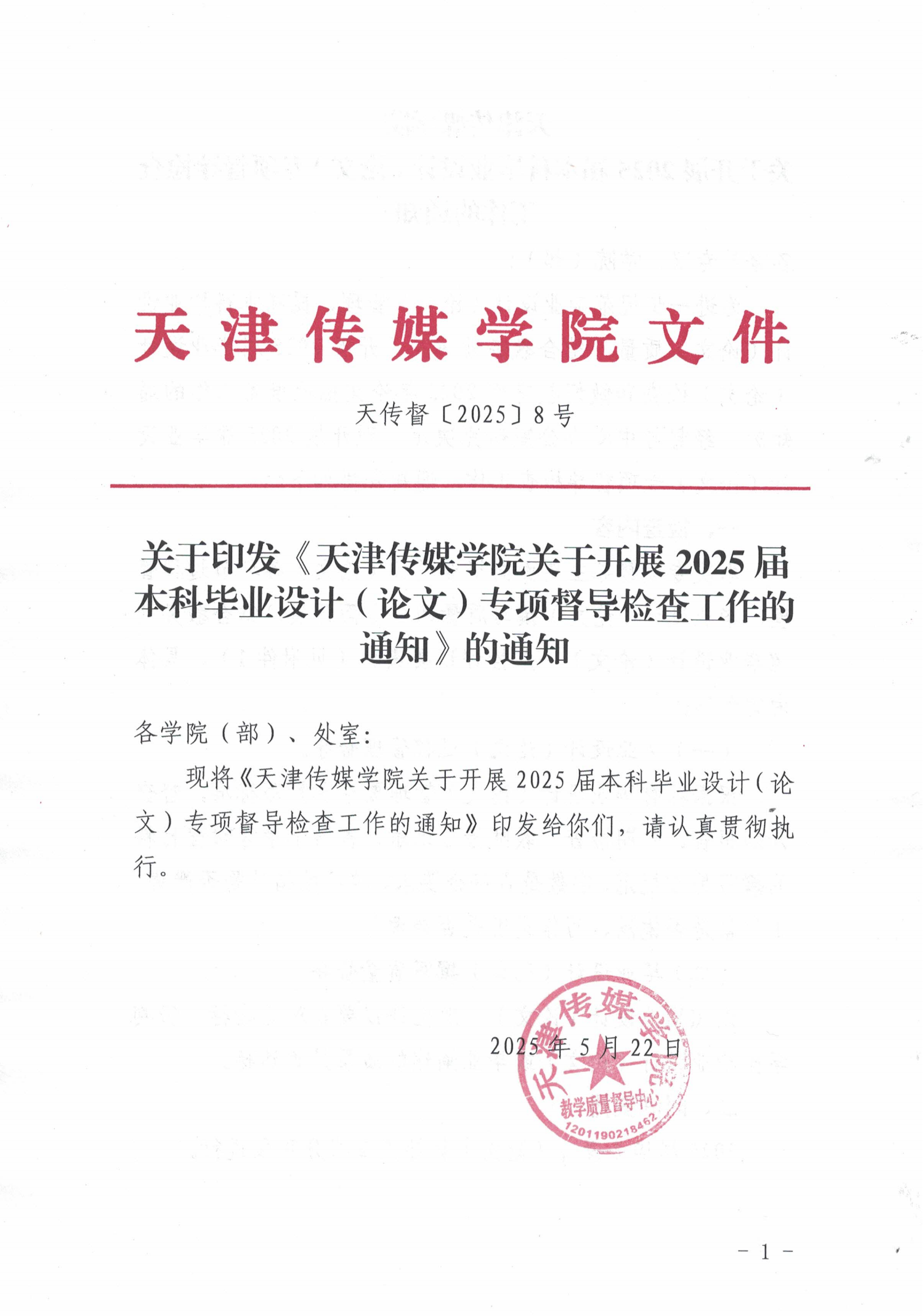关于印发《天津传媒学院关于开展2025届本科毕业设计(论文)专项督导检查工作的通知》的通知(天传督【2025】8号)