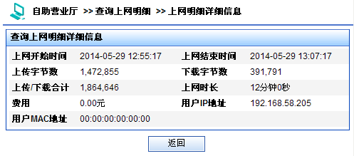 选择某一时间范围,系统可以显示上网时间、IP地址、网络流量。查看已上网的时长进行合理上网。