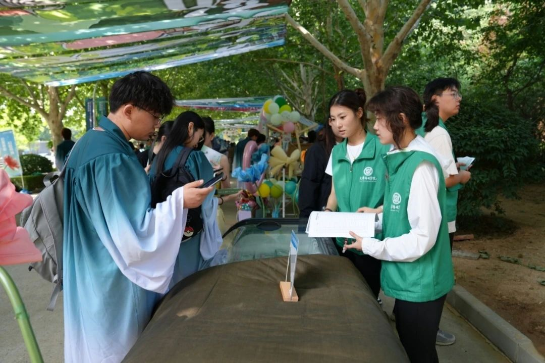 盛夏荷开,蝉鸣声声,夏日的热浪轻启毕业季的篇章。值此天津传媒学院2025届毕业生扬帆起航之际,围绕“只此青绿,梦启新程”的毕业季主题,校学生会于综合馆门口展开毕业季市集小镇活动。