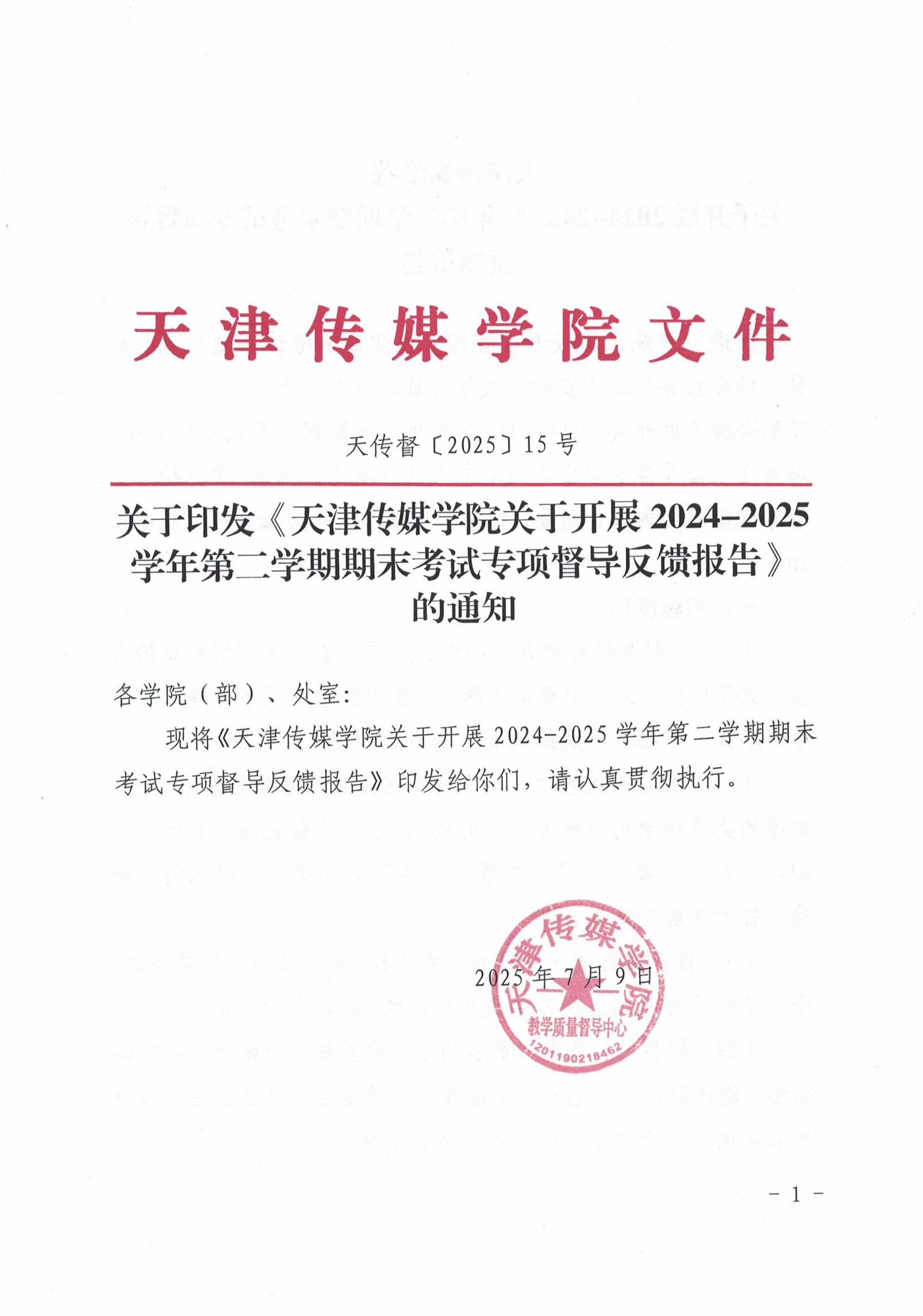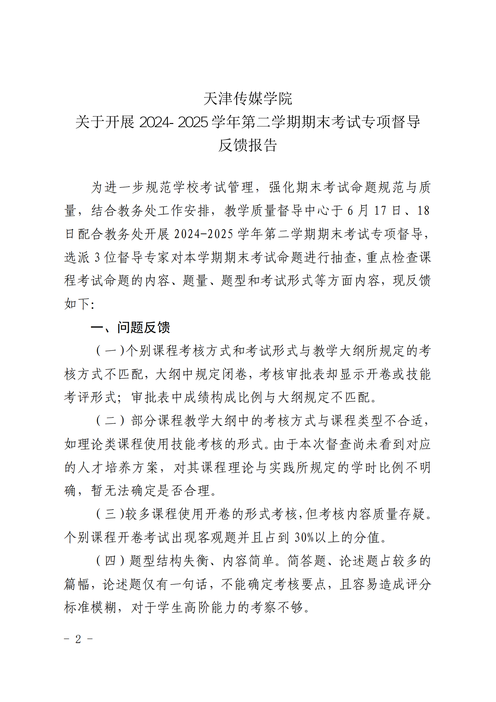 天津传媒学院关于开展2024-2025学年第二学期期末考试专项督导反馈报告