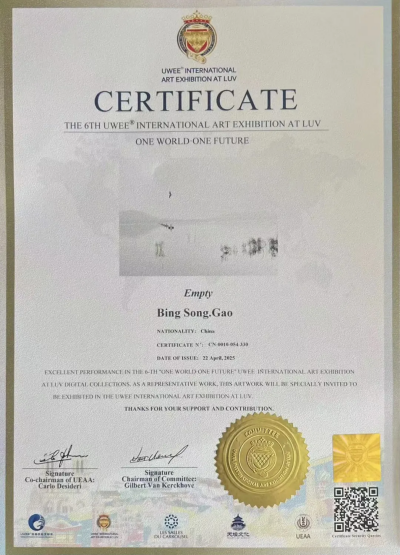 在博览会上,法国ArtShopping沙龙创始人Myriam Annonay-Castanet和总策展人Jany B等国际艺术界重磅人物齐聚一堂,大家对《空》表现出浓厚的兴趣。当超30000名全球藏家与观众共同欣赏这幅作品时,其所带来的的视觉张力和中国传统美学让观看者久久不能忘怀。高炳松的作品《空》在众多高水平的展览中脱颖而出,可见其间的艺术价值与深厚的中国传统文化底蕴。