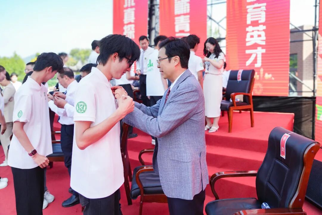 校徽授予仪式上,校领导与教授团亲手为新生佩戴校徽,“天传人”的身份与使命在此刻定格。